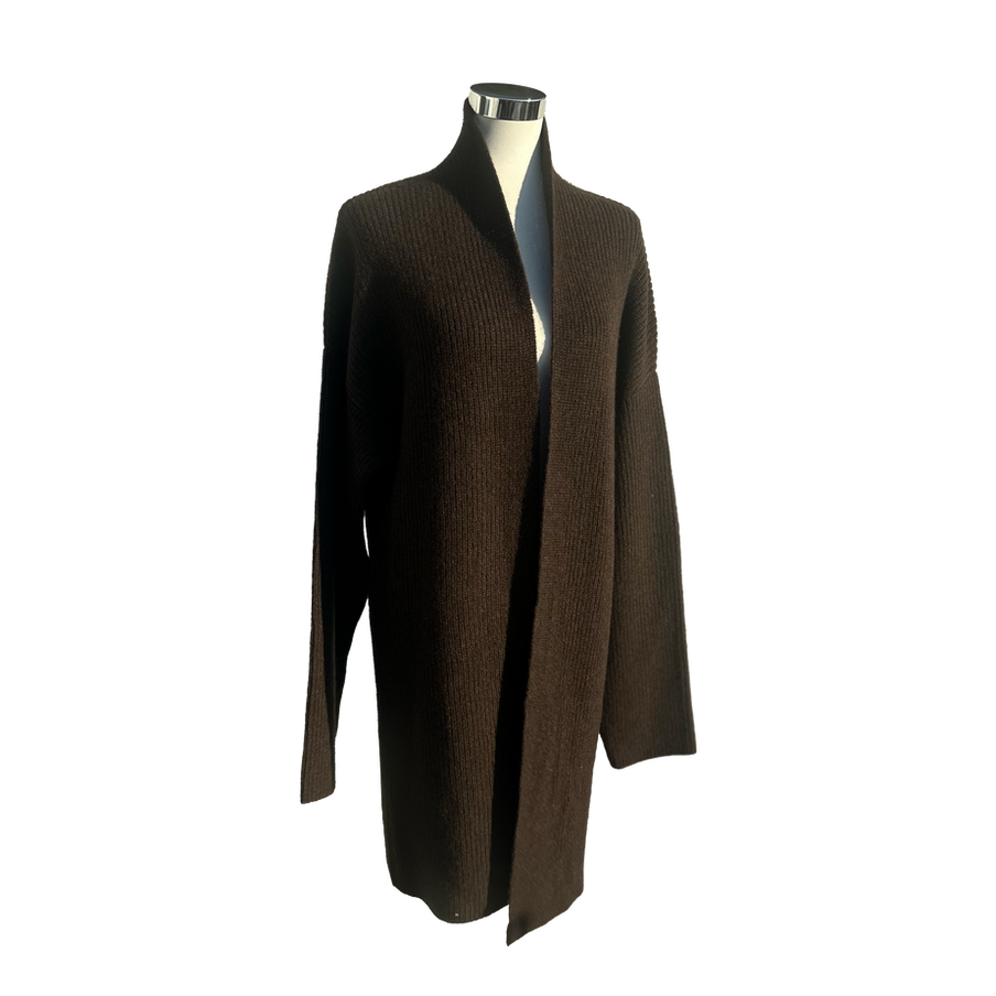 Der Mantel ist durch seinen dicken Rippstrick wunderbar geeignet für Herbst und Winterspaziergänge aber auch als treuer Begleiter am Schreibtisch oder auf dem Sofa mit seiner angenehm wohltuenden Wärme, die einen nicht schwitzen lässt.