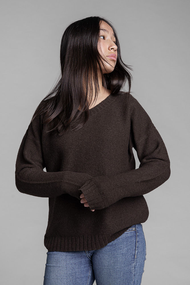 BUJIN ist ein leichter Yak-Sommerpullover mit V-Ausschnitt. Die krause Rippenstruktur sorgt für Luftigkeit und angenehmen Tragekomfort.